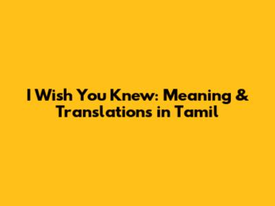 Common Translations of "I Wish You Knew" in Tamil