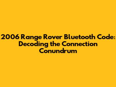 2006 Range Rover Bluetooth Code: Troubleshooting & Setup
