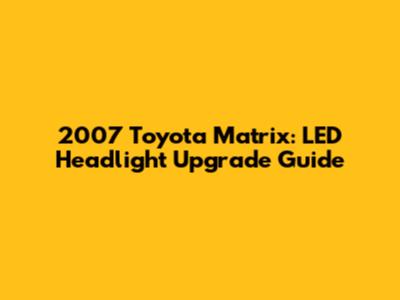 2007 Toyota Matrix: LED Headlight Upgrade Guide