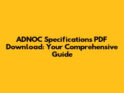 ADNOC Specs: Your Guide To PDF Downloads