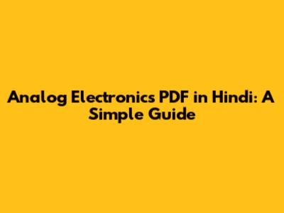 Analog Electronics PDF In Hindi: A Simple Guide