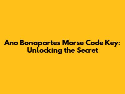 Ano Bonaparte's Morse Code Key: Unlocking The Secret