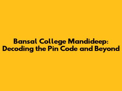 Hey there, future students and curious minds! If you're looking for information about Bansal College in Mandideep, you've come to the right place. We're going to dive deep into the pin code for the college, but we'll also explore some other cool details that you might find super helpful. So, grab your notebooks (or open a new tab), and let's get started on this exciting journey of discovery. Knowing the pin code is a crucial piece of information for several reasons, whether you're planning to send a letter, order something online, or simply want to know the area's postal code. Let's make sure you have all the information you need, delivered in a way that is easy to understand.