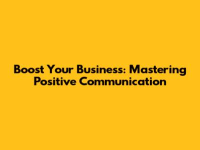 Boost Your Business: Mastering Positive Communication