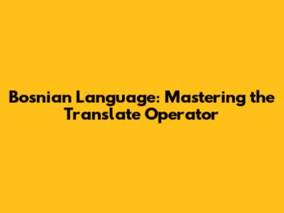 Bosnian Language: Mastering The Translate Operator