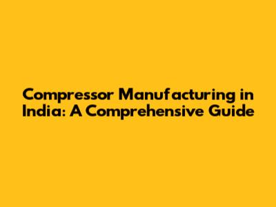 Compressor Manufacturing In India: A Comprehensive Guide