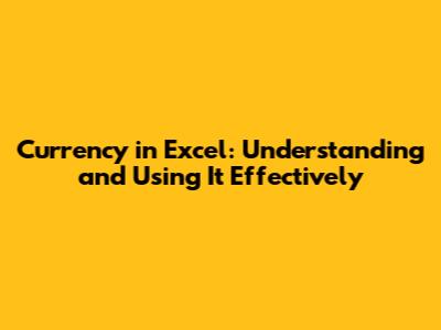 Currency In Excel: Understanding And Using It Effectively