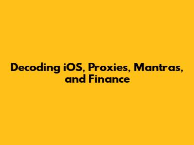 Decoding IOS, Proxies, Mantras, And Finance