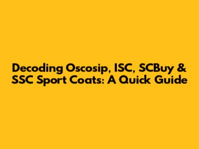 Decoding Oscosip, ISC, SCBuy & SSC Sport Coats: A Quick Guide
