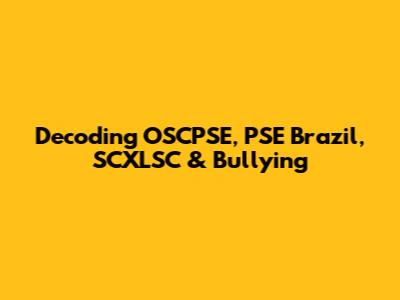 Decoding: OSCPSE, PSE Brazil, SCXLSC & Bullying