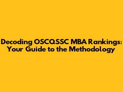 Decoding OSCQSSC MBA Rankings: Your Guide To The Methodology