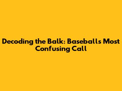 Decoding The Balk: Baseball's Most Confusing Call
