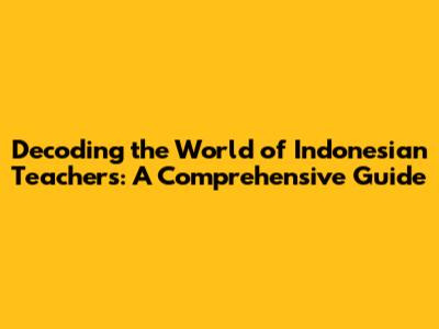 Decoding The World Of Indonesian Teachers: A Comprehensive Guide