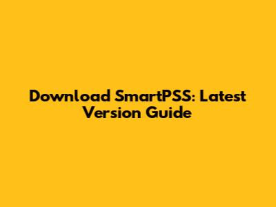 Download SmartPSS: Latest Version Guide