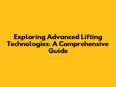 Exploring Advanced Lifting Technologies: A Comprehensive Guide