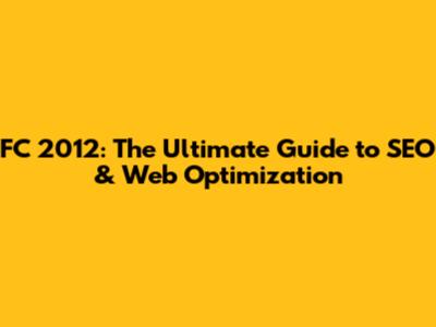 FC 2012: The Ultimate Guide To SEO & Web Optimization