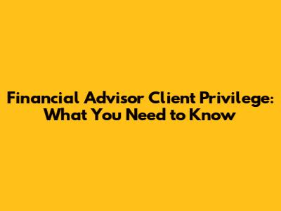 Understanding Financial Advisor Client Privilege