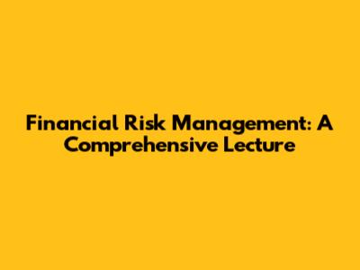 Financial Risk Management: A Comprehensive Lecture
