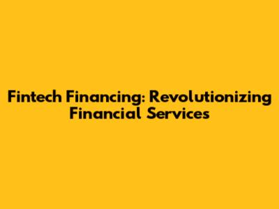 Fintech Financing: Revolutionizing Financial Services