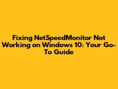 Fixing NetSpeedMonitor Not Working On Windows 10: A Quick Guide