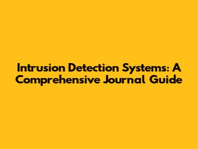 Intrusion Detection Systems: A Comprehensive Journal Guide