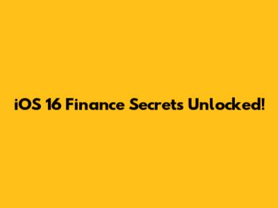 IOS 16 Finance Secrets Unlocked!
