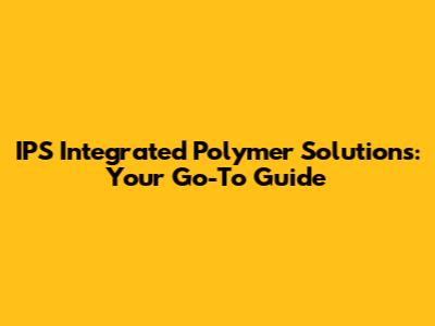 IPS Integrated Polymer Solutions: A Comprehensive Guide