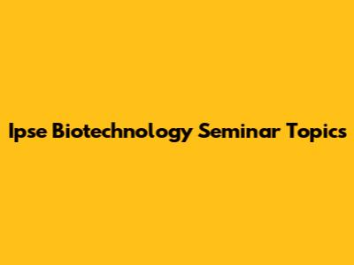 Ipse Biotechnology Seminar Topics: Ideas & Trends