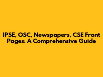 IPSE, OSC, Newspapers, CSE Front Pages: A Comprehensive Guide