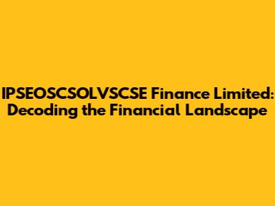 Hey guys, let's dive into the world of IPSEOSCSOLVSCSE Finance Limited. It might sound like a mouthful, but don't worry, we're going to break it down. Understanding the financial landscape can be tricky, but this article will serve as your go-to guide, offering clarity and insights into this specific financial entity. We will explore what this company does, its significance, and how it operates within the broader financial ecosystem. Get ready for a deep dive, where we'll demystify the complexities and shed light on the key aspects of IPSEOSCSOLVSCSE Finance Limited. This will include its core services, its position in the market, and some potential implications for its stakeholders. Our goal is to provide a clear and comprehensive overview, making it easier for you to grasp the essentials. So, buckle up and prepare to decode the financial world! This comprehensive guide aims to arm you with the knowledge you need to navigate the intricacies of IPSEOSCSOLVSCSE Finance Limited, ensuring you stay informed and empowered. Throughout this exploration, we'll keep the language accessible, avoiding technical jargon wherever possible. The intention is to make financial concepts understandable for everyone, irrespective of their prior experience. By the end of this journey, you'll be well-equipped to discuss and understand the operations and impact of IPSEOSCSOLVSCSE Finance Limited.