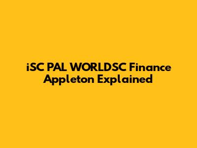 ISC PAL WORLDSC Finance Appleton Explained