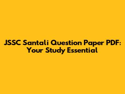 Why the JSSC Santali Question Paper PDF is a Game-Changer
