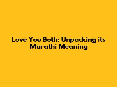 Love You Both: Unpacking Its Marathi Meaning