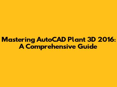 Mastering AutoCAD Plant 3D 2016: A Comprehensive Guide