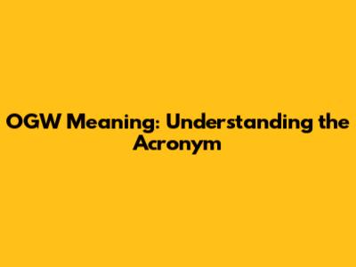 OGW Meaning: Understanding The Acronym