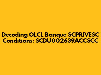 Hey there, finance enthusiasts! Let's dive deep into the often-mysterious world of OLCL Banque SCPRIVESC conditions, specifically focusing on the SCDU002639ACCSCC. This isn't just a bunch of random letters and numbers; it's a code that unlocks a treasure trove of information about your banking agreement. This guide is designed to break down the complexities, making it easy for you to understand your rights, obligations, and the nitty-gritty details that matter most. We'll explore what these conditions entail, why they're important, and how they impact your financial journey with OLCL Banque SCPRIVESC. Ready to demystify the fine print? Let's get started!