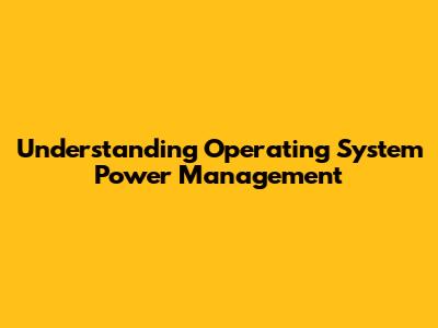 Understanding Operating System Power Management
