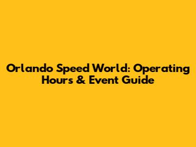 Orlando Speed World: Operating Hours & Event Guide