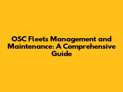 OSC Fleets Management And Maintenance: A Comprehensive Guide