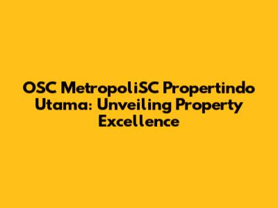 OSC MetropoliSC Propertindo Utama: Your Property Guide