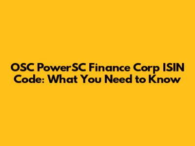 OSC PowerSC Finance Corp ISIN Code: What You Need To Know
