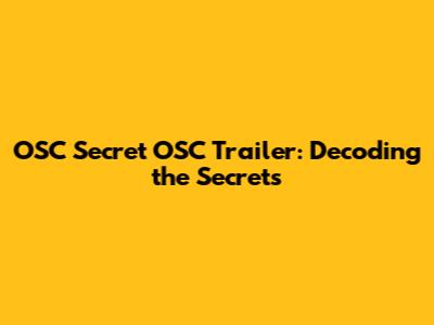 OSC Secret OSC Trailer: Decoding The Secrets