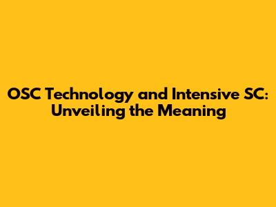 OSC Technology Explained: Deep Dive Into Intensive SC