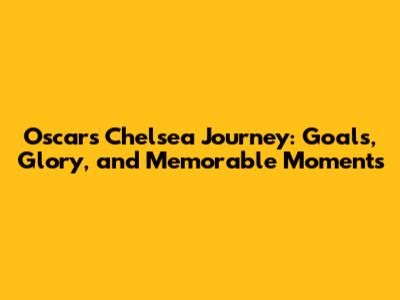 Oscar's Chelsea Journey: Goals, Glory, And Memorable Moments