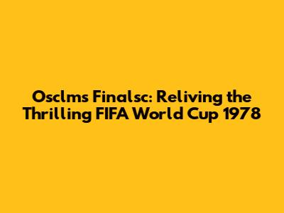 Osclms Finalsc: Reliving The Thrilling FIFA World Cup 1978