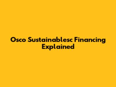 Osco Sustainablesc Financing Explained