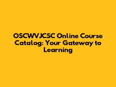 OSCWVJCSC Online Course Catalog: Your Gateway To Learning