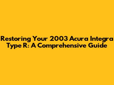 Restoring Your 2003 Acura Integra Type R: A Comprehensive Guide