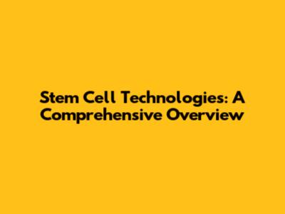 Stem Cell Technologies: A Comprehensive Overview