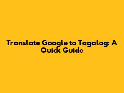 Translate Google To Tagalog: A Quick Guide